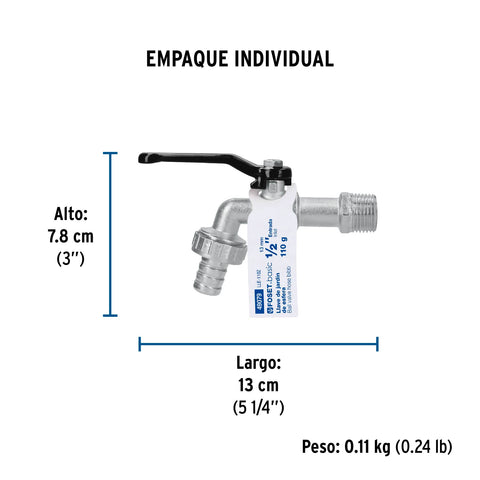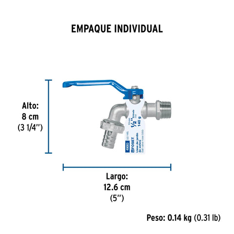 Llave de esfera, de zinc, 110 gr, entrada 1/2', FOSET BASIC | LLE-110Z | 49079