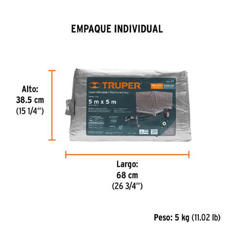 Lona de polietileno reforzada 5 x 5 m, gris, 180g/m2, TRUPER | LT-55 | 10775