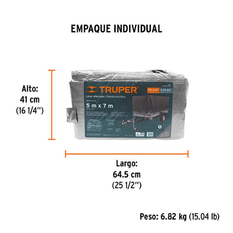 Lona de polietileno reforzada 5 x 7 m, gris, 180g/m2, TRUPER | LT-57 | 10776