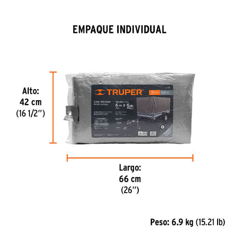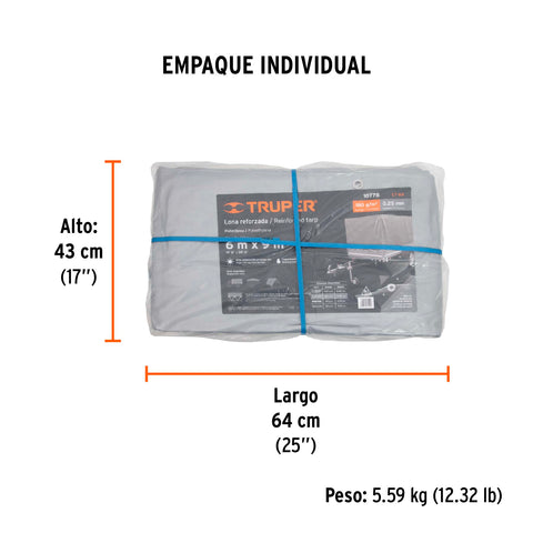 Lona de polietileno reforzada 6 x 6 m, gris, 180g/m2, TRUPER | LT-66 | 10777
