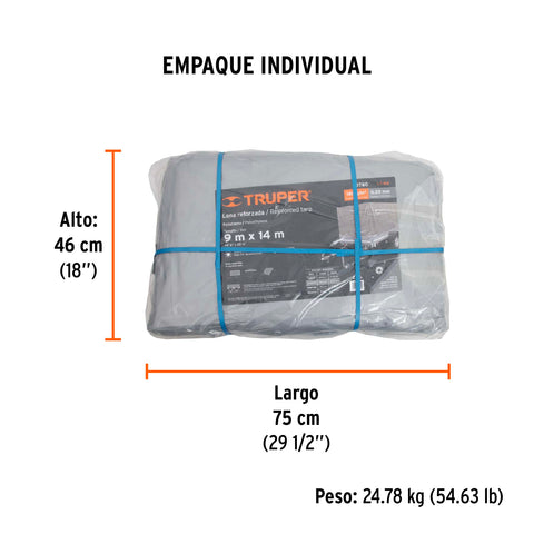 Lona de polietileno reforzada 9x14 m, gris, 180g/m2, TRUPER | LT-914 | 10780