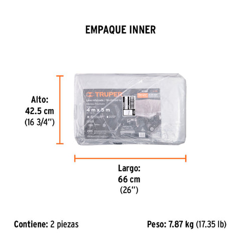 Lona de polietileno reforzada 4 x 5 m, gris, 180g/m2, TRUPER | LT-45 | 15364