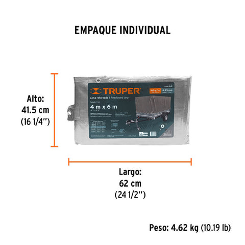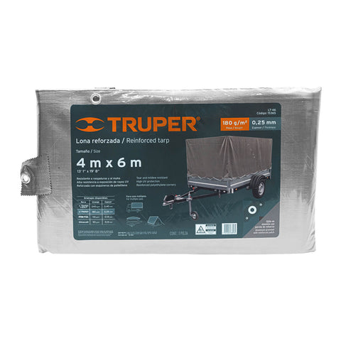 Lona de polietileno reforzada 4 x 6 m, gris, 180g/m2, TRUPER | LT-46 | 15365