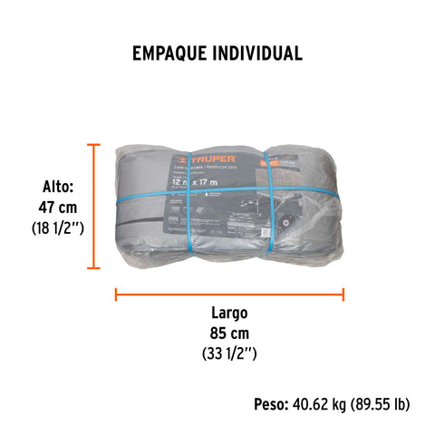 Lona de polietileno reforzada 12x17 m, gris, 180g/m2, TRUPER | LT-1217 | 15368