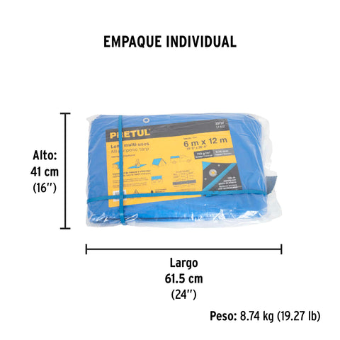 Lona de polietileno reforzada 6x12 m, azul, 180g/m2, TRUPER | LT-612Z | 15375