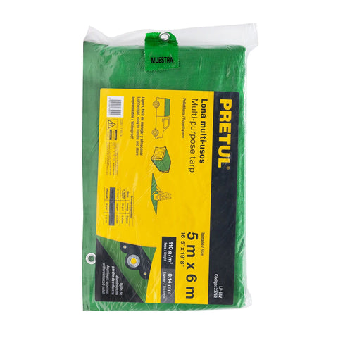 Lona de polietileno 5 x 6 m, verde, 110 g/m2, PRETUL | LP-56V | 23752