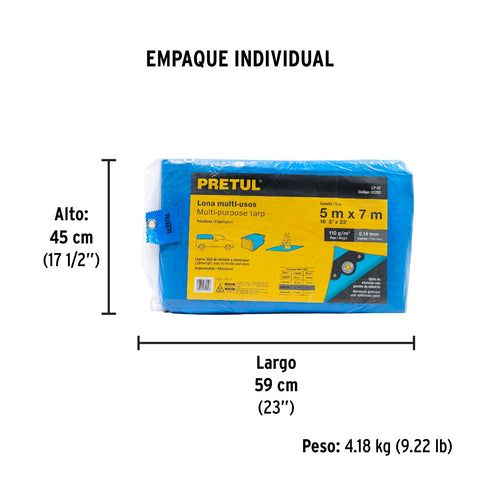 Lona de polietileno 5 x 7 m, azul, 110 g/m2, PRETUL | LP-57 | 23783