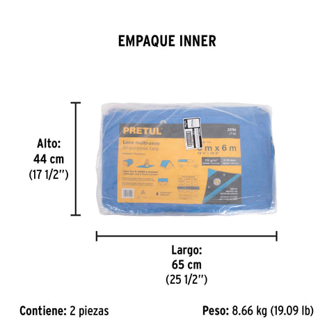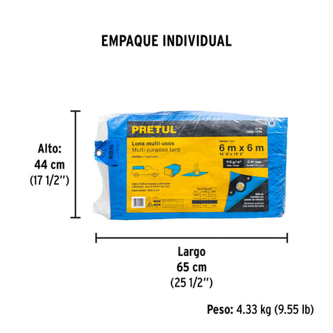Lona de polietileno 6 x 6 m, azul, 110 g/m2, PRETUL | LP-66 | 23784