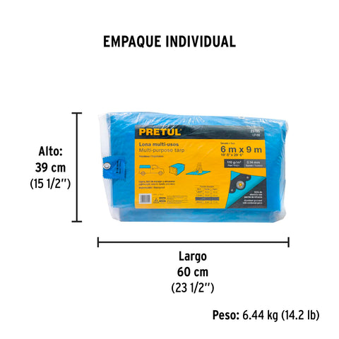 Lona de polietileno 6 x 9 m, azul, 110 g/m2, PRETUL | LP-69 | 23785