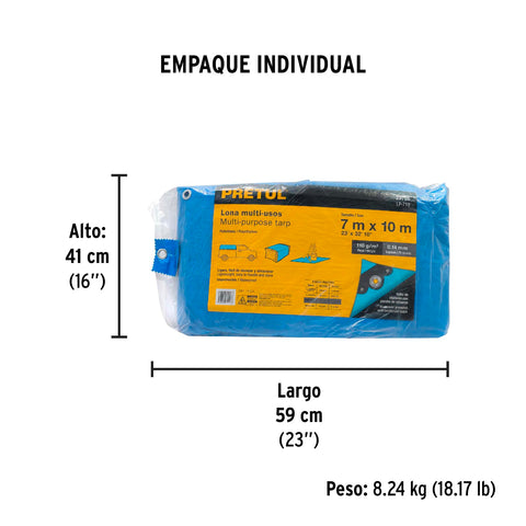 Lona de polietileno 7 x 10 m, azul, 110 g/m2, PRETUL | LP-710 | 23786