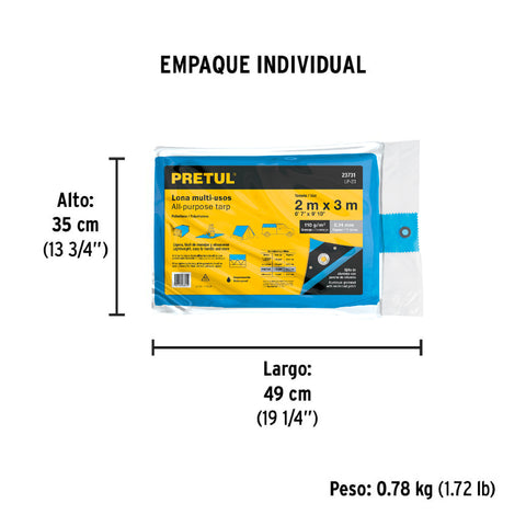 Lona de polietileno 2 x 3 m, azul, 110 g/m2, PRETUL | LP-23 | 23731