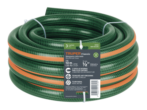 Manguera de jardín 1/2', 3 capas, 10m, sin conexiones TRUPER | MAN-10X1/2RS | 103942