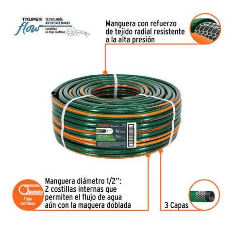 Metro de manguera 1/2' 3 capas en rollo de 100 m, Truper | MAN-1/2R | 19857