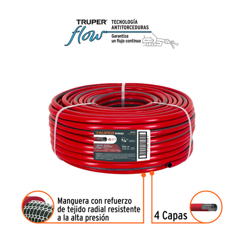 Metro de manguera 5/8' 4 capas en rollo de 100 m, Truper | MAN-5/8X | 19873