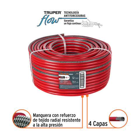 Metro de manguera 1/2' 4 capas en rollo de 50 m, Truper | MAN-1/2XM | 102554