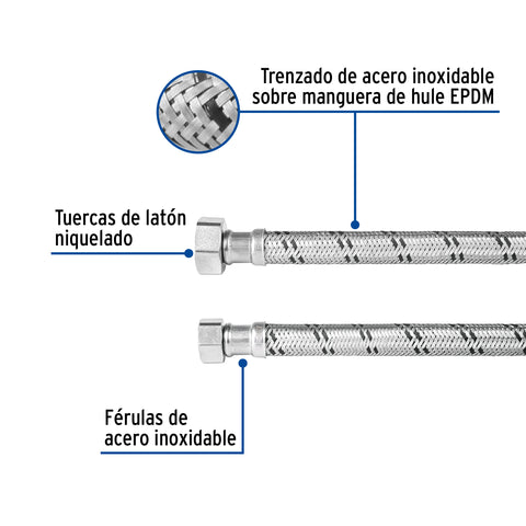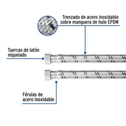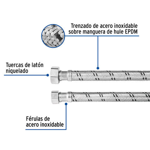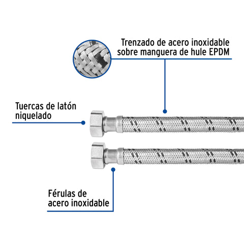 Manguera para boiler, acero inox, 1/2'x1/2', 60 cm, FOSET | FBO-2260X | 48965
