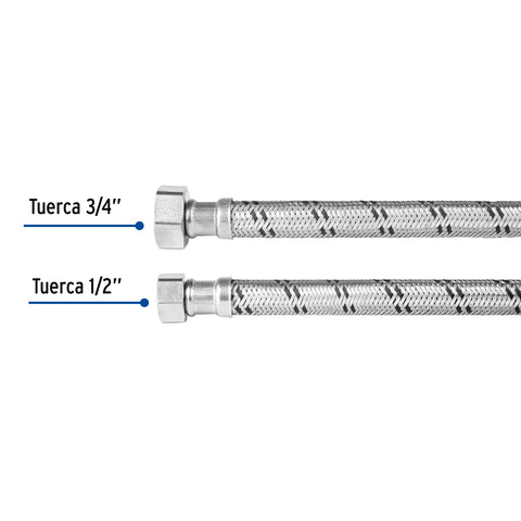 Manguera para boiler, acero inox, 1/2'x3/4', 120 cm, FOSET | FBO-12120X | 47425