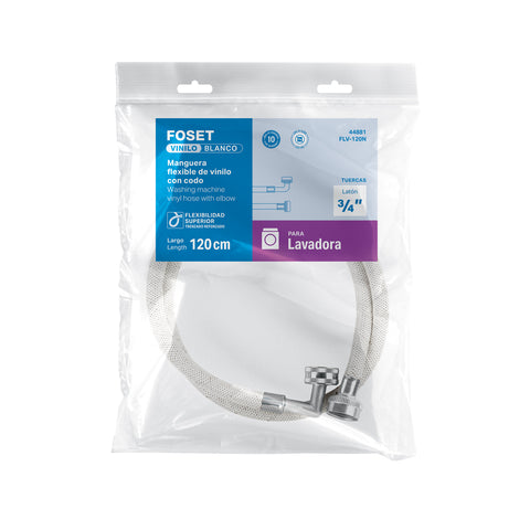 Manguera para lavadora, vinilo, c/codo 90, FOSET | FLV-120N | 44881