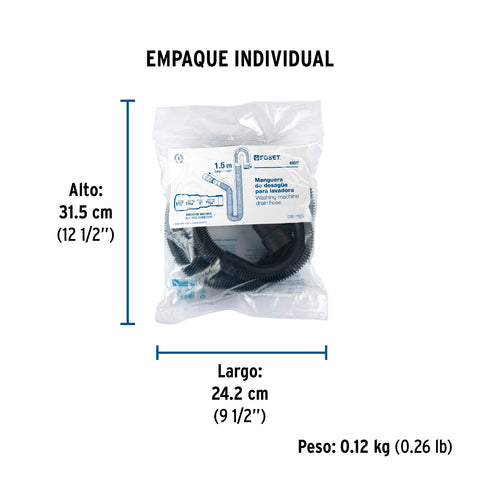 Manguera p/desagüe de lavadora, polietileno, 1.5m, FOSET | MAD-150 | 48027