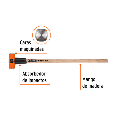 Marro octagonal 16 lb, mango de madera 36', Truper | MD-16M | 16515