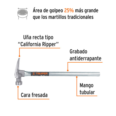 Martillo 20 oz uña recta tipo California Ripper, Truper Grip | MORCA-20 | 19990
