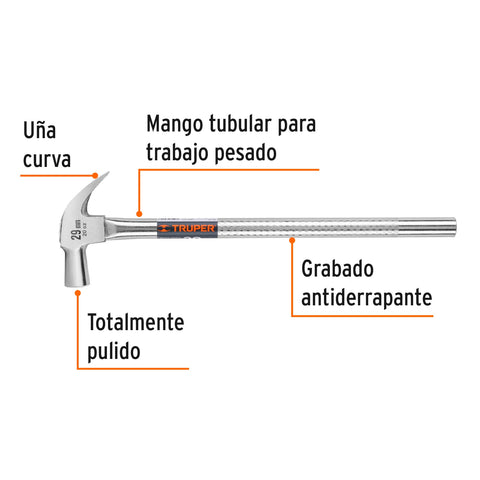 Martillo tubular pulido 20 oz uña recta, Truper | MTR-20 | 16703
