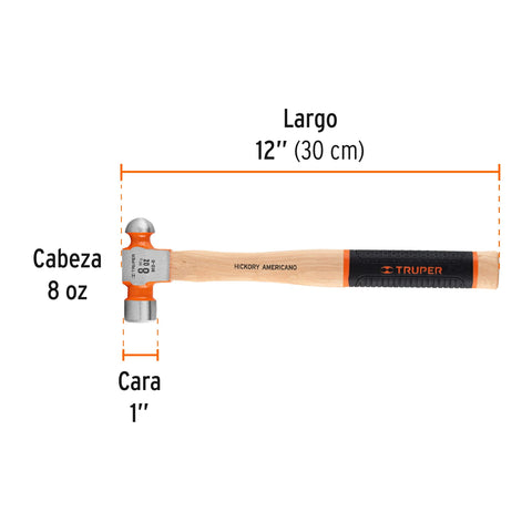 Martillo pulido de bola 8 oz mango hickory, Truper Grip | MB-8 | 16900