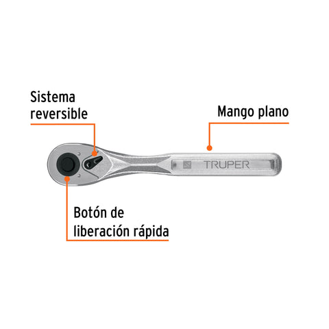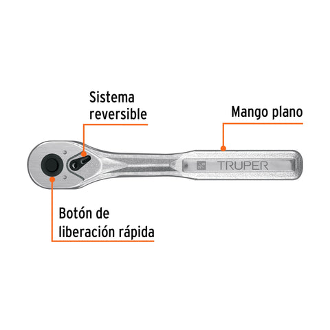 Matraca liberación rápida 72 dientes, cuadro 1/4', Truper | M-1472 | 102369