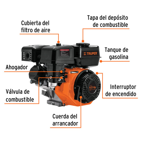Motor a gasolina 6.5 HP, Truper | MOG-65 | 101327