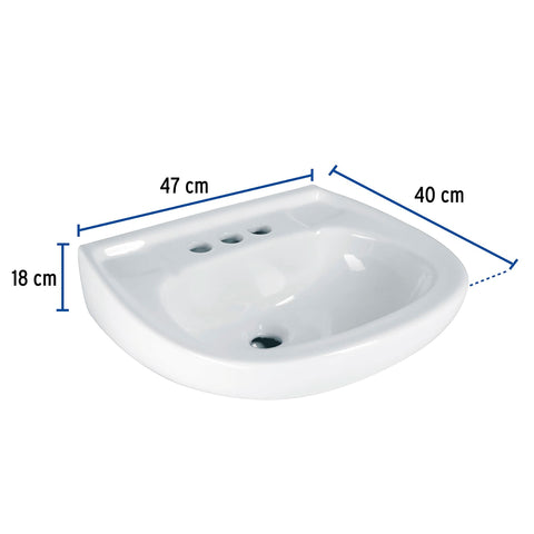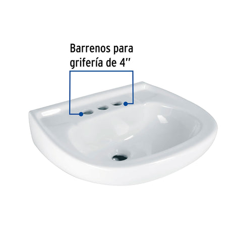 Lavabo de porcelana con rebosadero, blanco, FOSET | MUBA-10B | 44002