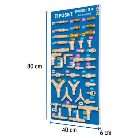 Exhibidor con conexiones para manguera de PP, FOSET | EX-CM-FOS | 55955
