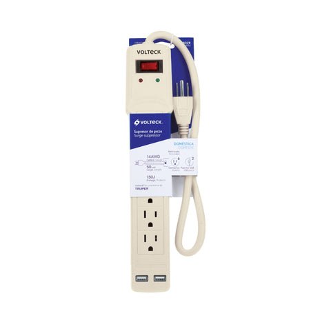 Multicontacto 14 AWG 6 entradas 2 ptos. USB sup. 150J marfil | MUL-615U | 46329