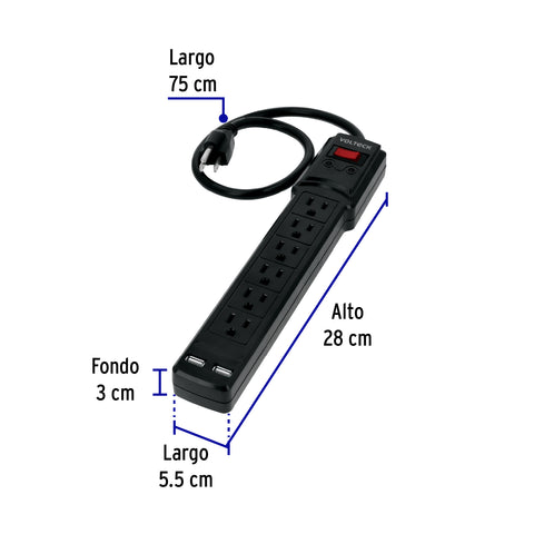 Multicontacto 6 entradas, 2 USB A + 2 USB C, negro, VOLTECK | MUL-612UN | 45663