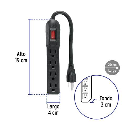 Multicontacto 14 AWG 6 entradas supresor de picos 450 joules | MUL-645 | 47184