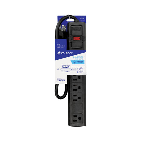 Multicontacto 16 AWG doméstico con 6 entradas, negro Volteck | MUL-6N | 49859