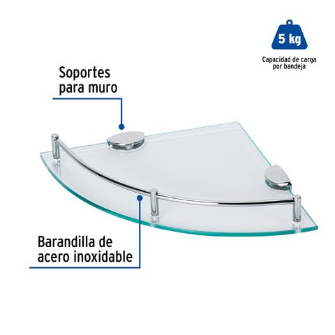Juego de 4 repisas esquineras de vidrio, FOSET | RES-4V | 47906