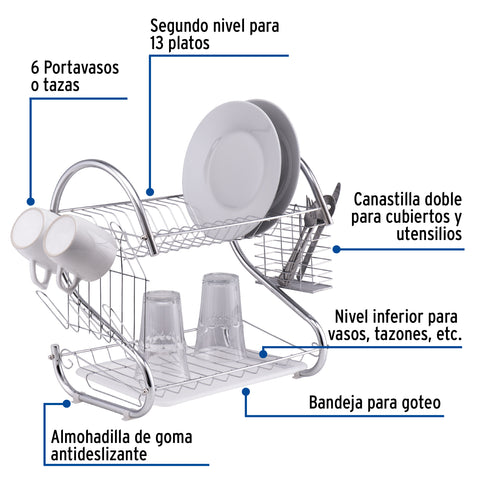 Escurridor de acero cromado con 2 niveles para trastes | ETR-2 | 47908