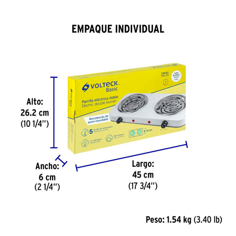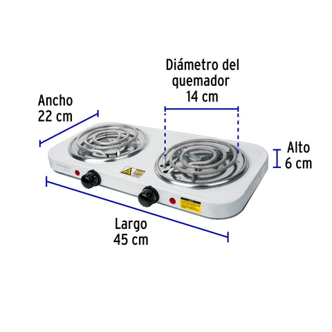 Parrilla eléctrica 2 quemadores en espiral, blanca, VOLTECK | PAEL-2C | 48127