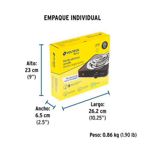 Parrilla eléctrica 1 quemador espiral, negra, VOLTECK | PAEL-1CN | 47556
