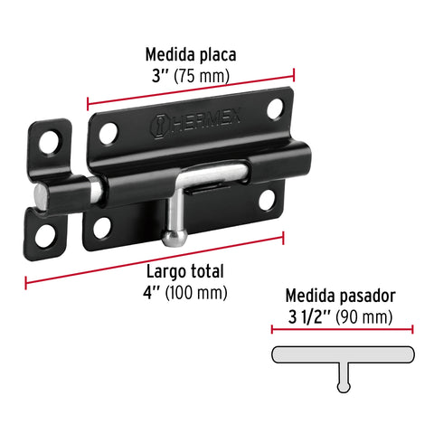 Pasador de barra plana 4', negro, HERMEX | PAN-37 | 47930