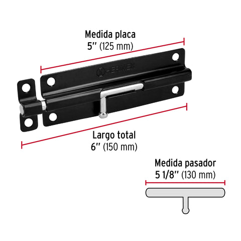 Pasador de barril 6' de acero acabado negro, HERMEX | PAS-66 | 43697