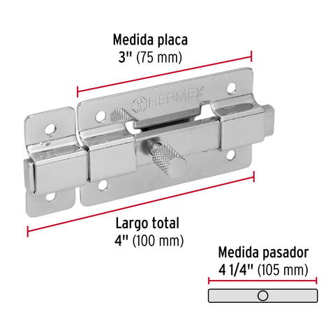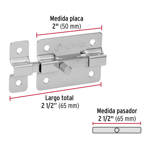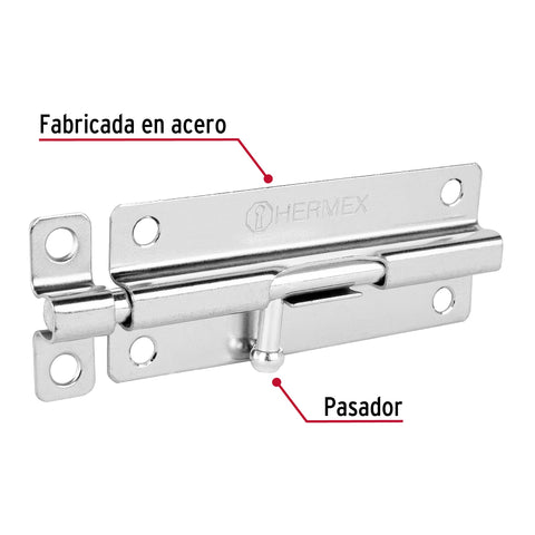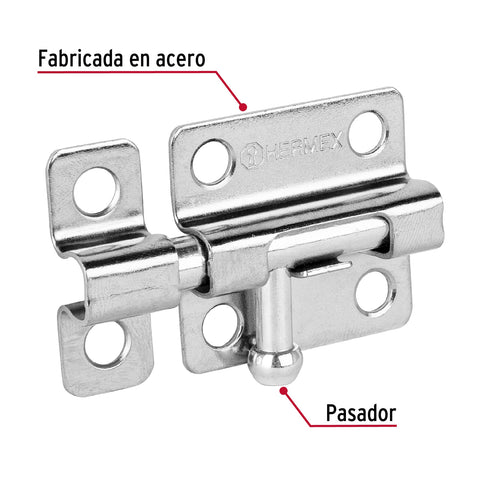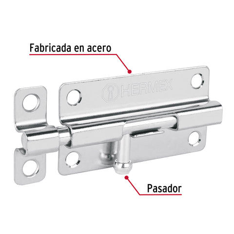 Pasador de sobreponer, modelo 31, cromo, HERMEX | PAS-31M | 45866