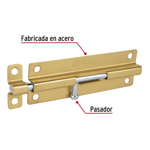 Pasador de barra plana 4' acabado latón, HERMEX | PAL-37 | 43726