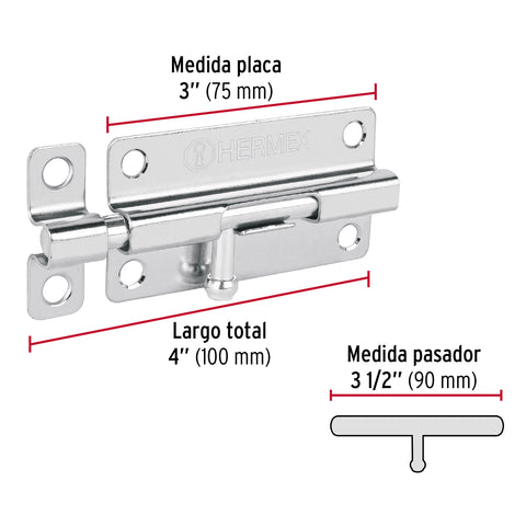 Pasador de barra plana 3' acabado cromo, HERMEX | PAC-36 | 43714