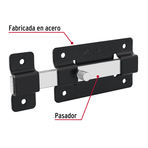 Pasador abatible para puerta, acabado negro, HERMEX | PAAB-6 | 45678