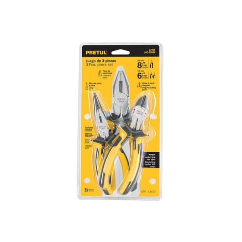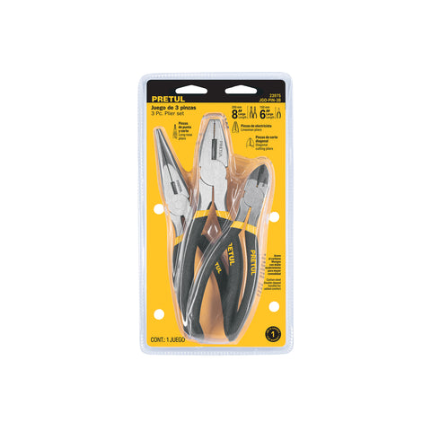 Juego de 3 pinzas, 2 de 6' y 1 de 8', mangos de PVC, Pretul | JGO-PIN-3B | 23975