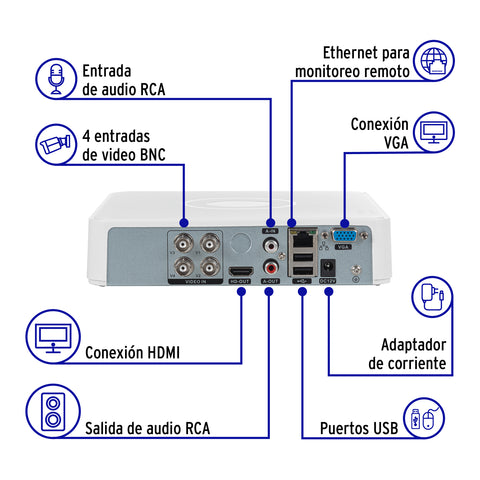 Video grabador DVR de 4 canales, 5MP, Volteck | CTV-DVR-4A | 49584