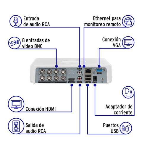 Video grabador DVR de 8 canales, 5MP, Volteck | CTV-DVR-8A | 49585