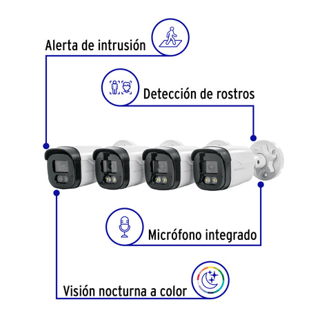 Kit video vigilancia, 4 canales, 4 cámaras, 5MP, Disco 1TB | CTV-KIT-4A | 49586